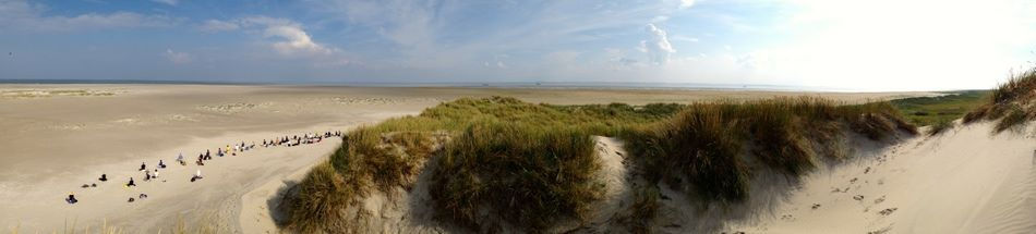 Twee weken geleden hebben we tijdens de derde week van de month long een dag doorgebracht op de oostelijke punt van Ameland. De dorpjes van Ameland liggen aan de westkant, en de oostelijke helft van het eiland bestaat helemaal uit natuurgebied: duinen en strand. Met een speciaal voor oons gecharterde boot zijn we van de haven van Lauwersoog in een uur of 2 over de waddenzee gevaren en afgezet op de oostpunt van Ameland. Onderaan het einde van de duinenrij hebben we en meditatieplek gemaakt, in een lange rij.