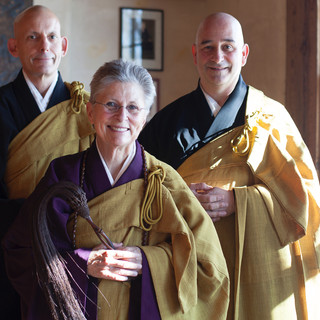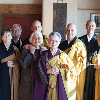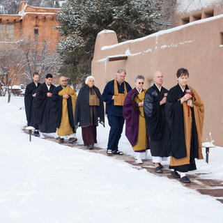 On January 6th we had a big ceremony at Upaya. Two men, Joshin and Genzan, received dharma transmission [NL: ontvingen dharma transmissie] from Roshi Joan, thereby fully authorizing them as zen teachers [NL: waarmee ze volledig als zenleraar werden geautoriseerd]. My teacher (who had received dharma transmission in 2012) had come to Upaya for this ceremony, as well as two other dharma succesors [NL: dharma opvolgers] of Roshi's (Shinzan and Al Kaszniak).